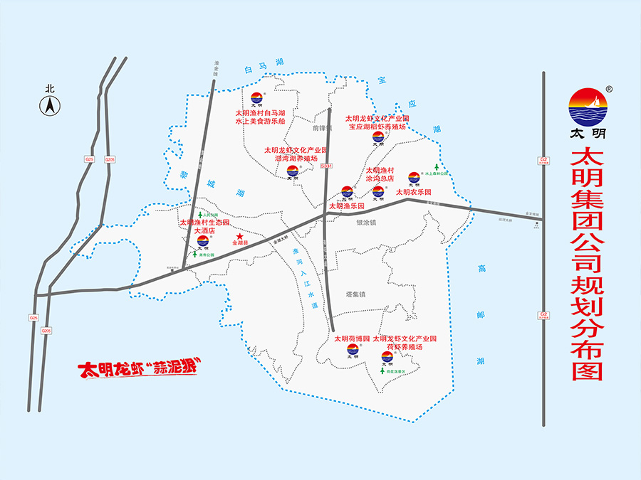 金湖太明漁村餐飲管理連鎖有限公司轄有太明漁村涂溝總店、太明生態園大酒店、太明漁村南京店三個直營店,江蘇太明龍蝦文化產業園有限公司,江蘇太明酒店管理有限公司,金湖太明漁村水產專業合作社和12個加盟合作店,以“公司+合作社+養殖基地+連鎖店+直營店+網店”的經營模式多元化發展。